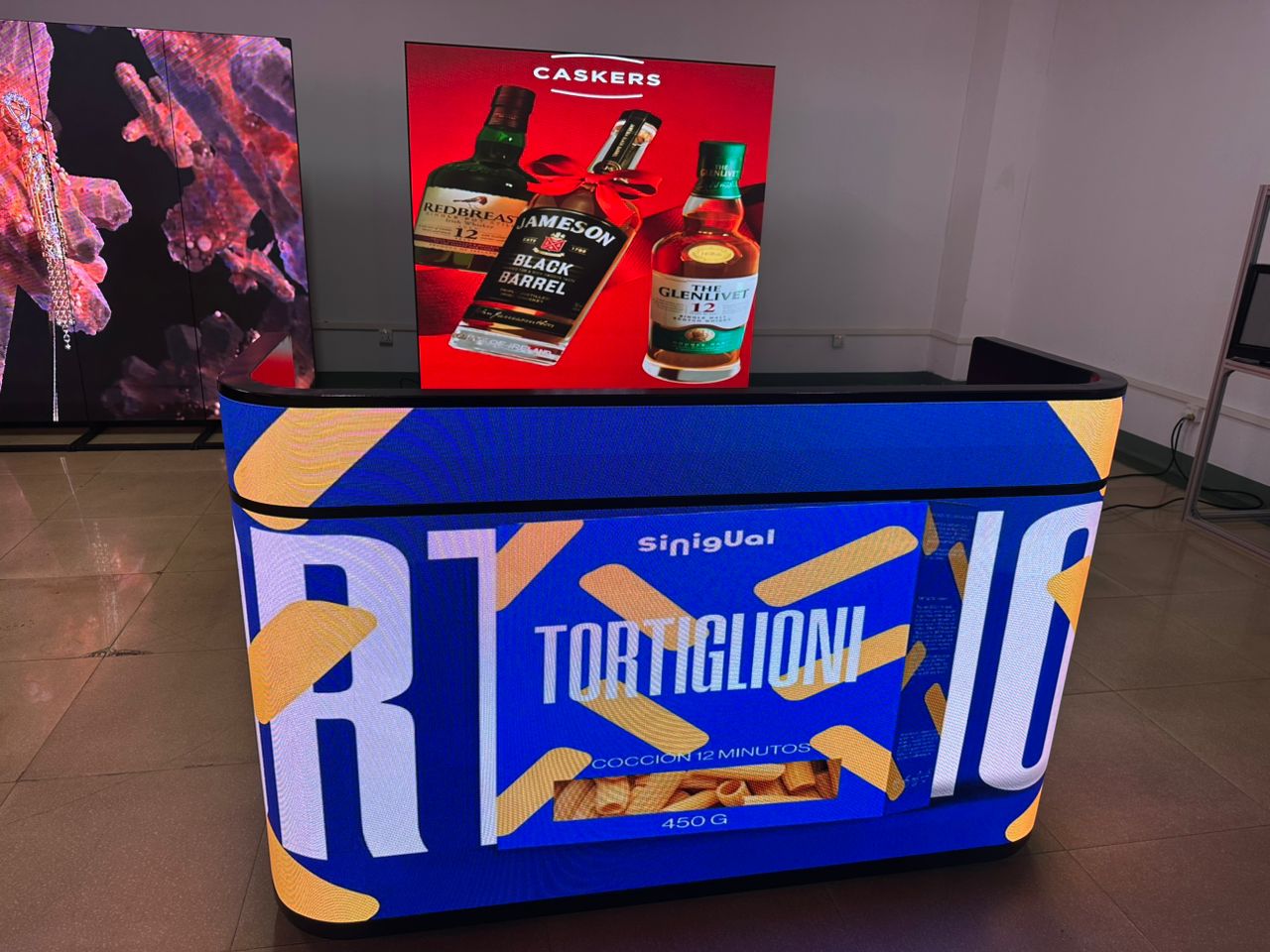 Begrüßen Sie Ihre Kundinnen und Kunden einmal anders als mit einem gewöhnlichen Tisch – wie wäre es mit einem Tisch voller Bildschirme?
