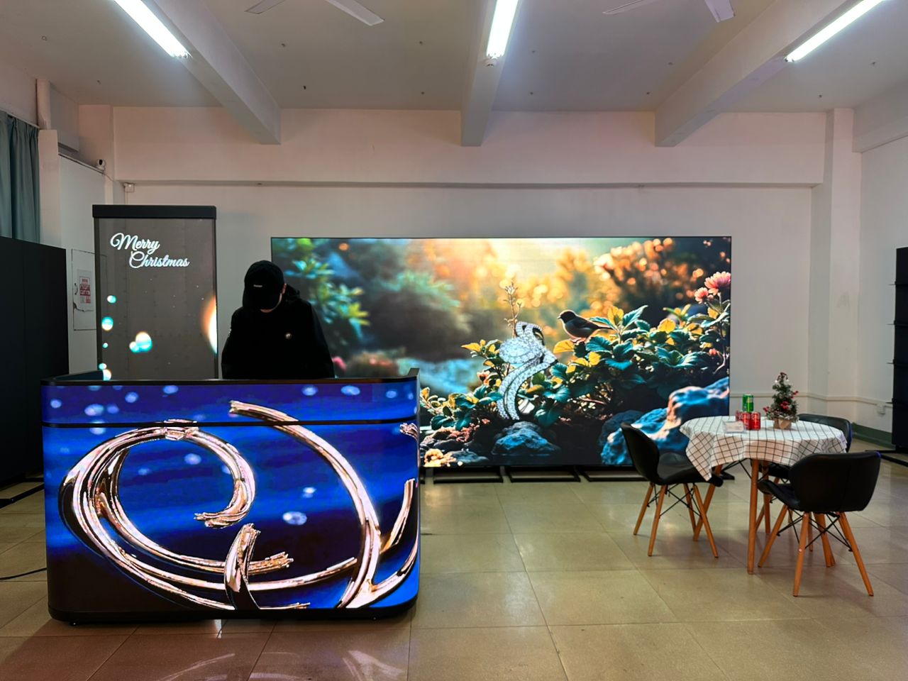 Präsentieren Sie auf dem LED-Tisch Fotos, Bilder, Videos mit Ton sowie 2D- und 3D-Animationen. Alternativ können Sie Inhalte auch live auf das Gerät streamen – sei es für eine Präsentation oder während eines DJ-Sets.
